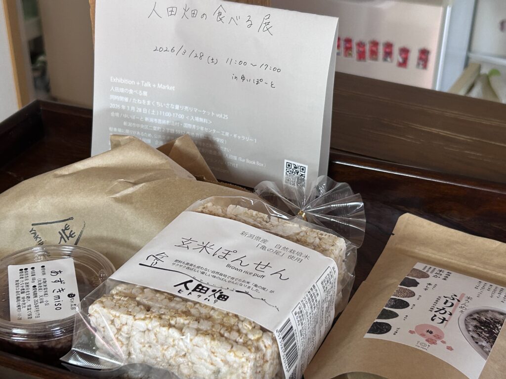 古道具屋で木製のお盆を買い、たなか農園さんであずき味噌を買い、人田畑の紹介もあって場所移動。